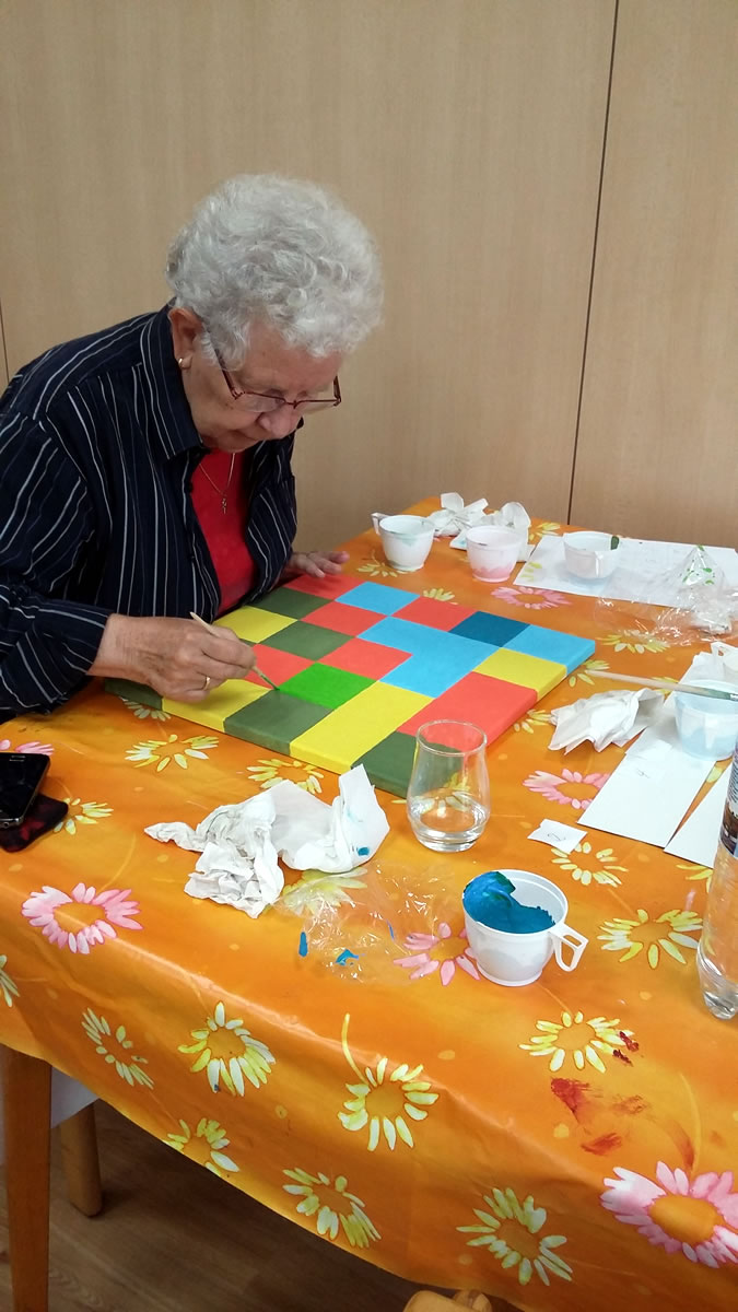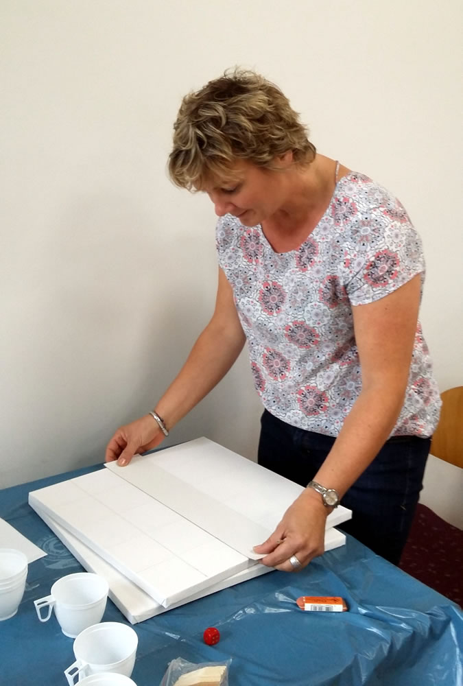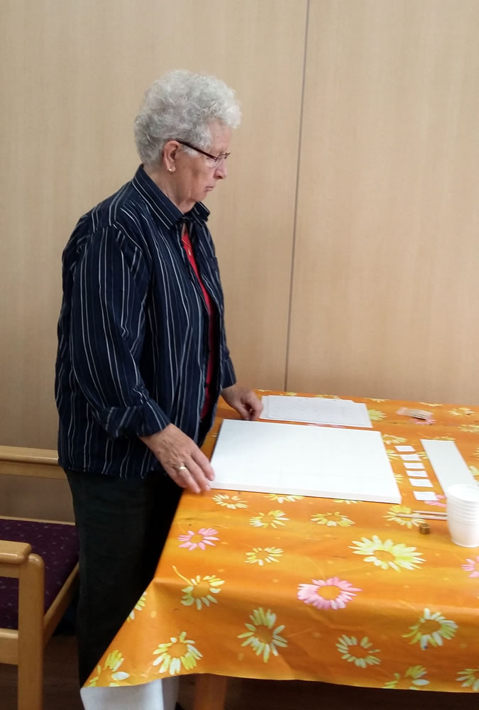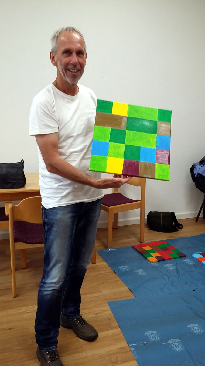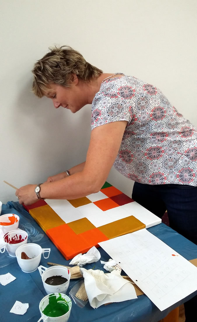 Unter Leitung der Kunstpädagogin Barbara Bull .zur Gestaltung der Wand des Gemeinderaumes