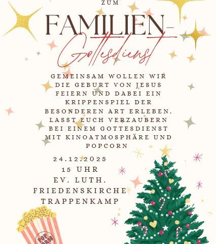 Weiterlesen24.12. um 15:00 Uhr: Familiengottesdienst mit Kino-Atmosphäre, Krippenspiel-Film aus Trappenkamp & Bornhöved